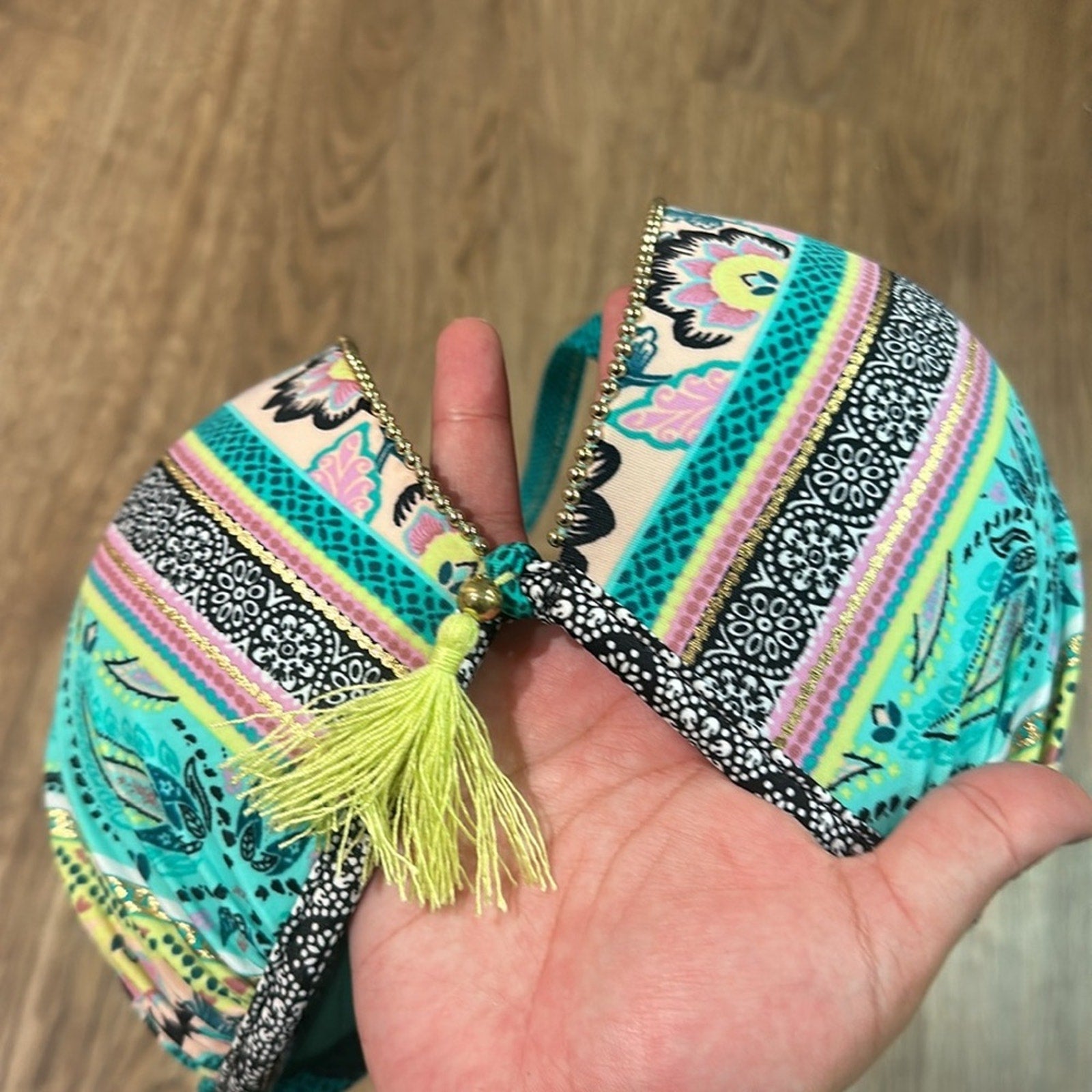 Vibrant colored string bikini top , push up padding , non removable, in very good gently used condition