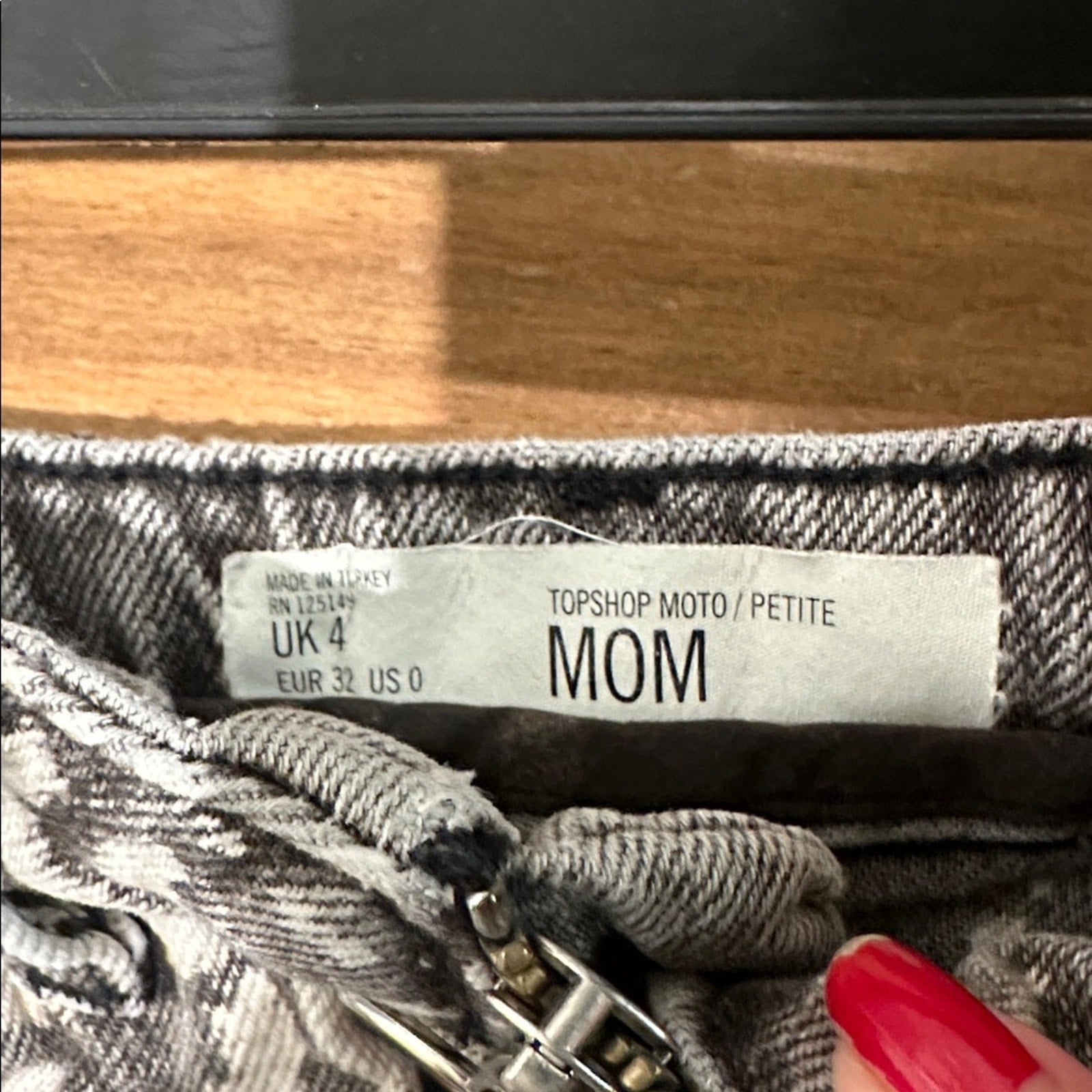 Topshop grey acid splatter distressed denim shorts size 0